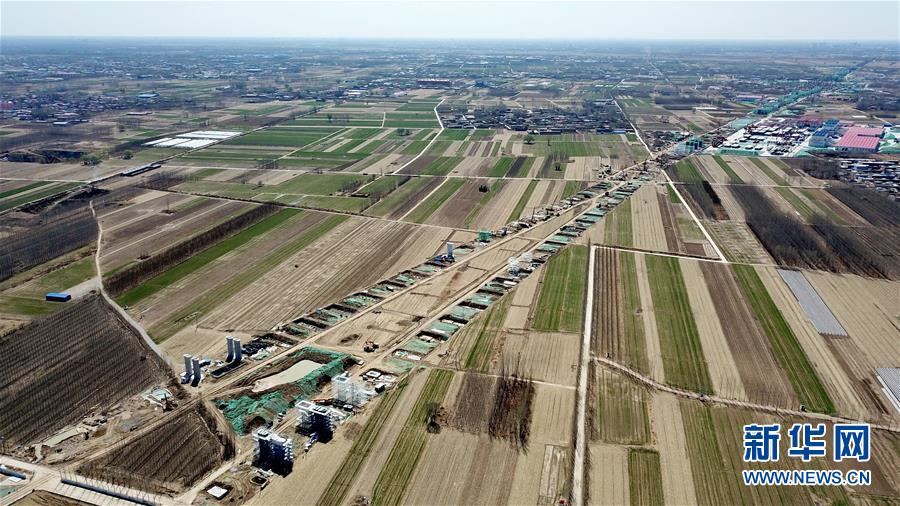 這是京雄城際鐵路施工現(xiàn)場(3月21日無人機拍攝)。新華社記者牟宇攝