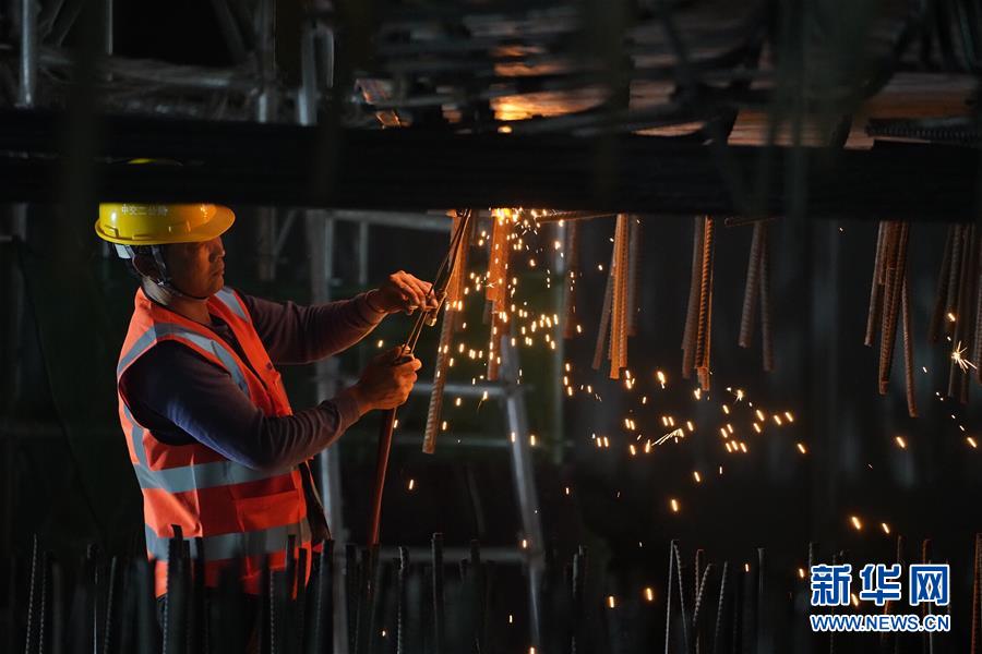 8月27日凌晨,施工人員在進(jìn)行橋梁轉(zhuǎn)體施工。 新華社記者 楊世堯 攝