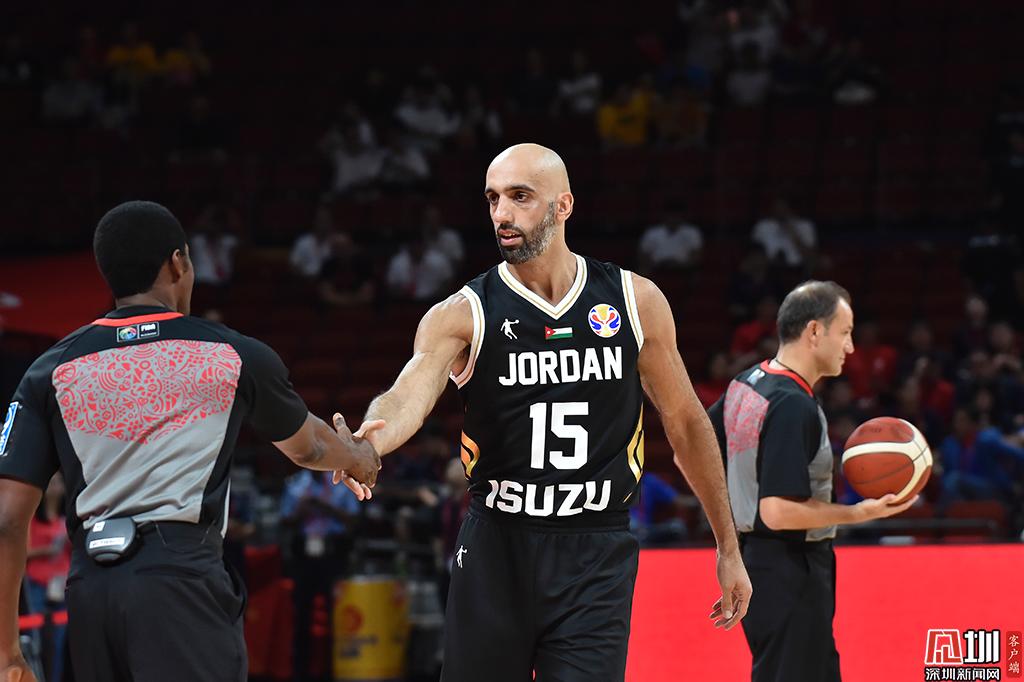 約旦球員阿巴斯賽前與裁判握手,阿巴斯曾在cba聯(lián)賽效力。