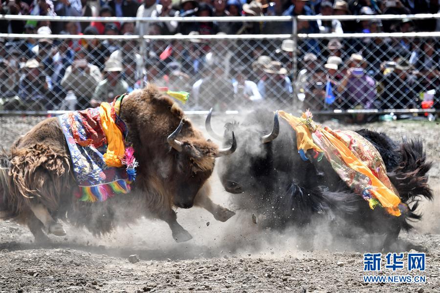 者下鄉(xiāng)斗牛節(jié)歷史悠久,是西藏自治區(qū)非物質(zhì)文化遺產(chǎn)。牧民為參加比賽的種牦牛披綢掛緞,將牛群趕到位于日喀則市白朗縣者下鄉(xiāng)的斗牛場(chǎng)上。參賽的種牦牛為了爭(zhēng)奪牛群的控制權(quán),在成群的母牛面前,更加好斗。角斗有的瞬間分出勝負(fù),有的持續(xù)幾十分鐘,最終勝出的被稱(chēng)為“牦牛至尊”。