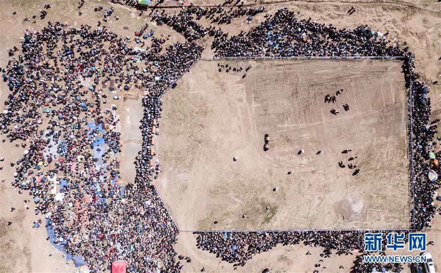 這是斗牛現(xiàn)場(9月9日無人機拍攝)。新華社記者 李鑫 攝