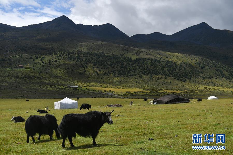 這是9月8日在四川省康定市呷巴鄉(xiāng)俄達門巴村附近拍攝的一處藏族牧民的牦牛牧場。新華社記者孫瑞博攝
