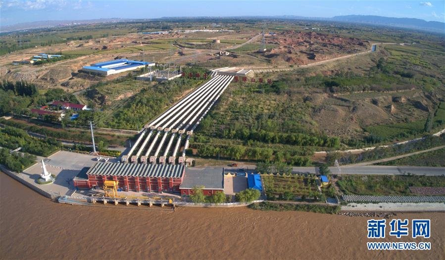 黃河青銅峽水利樞紐工程(9月1日無人機拍攝)。新華社記者劉詩平攝