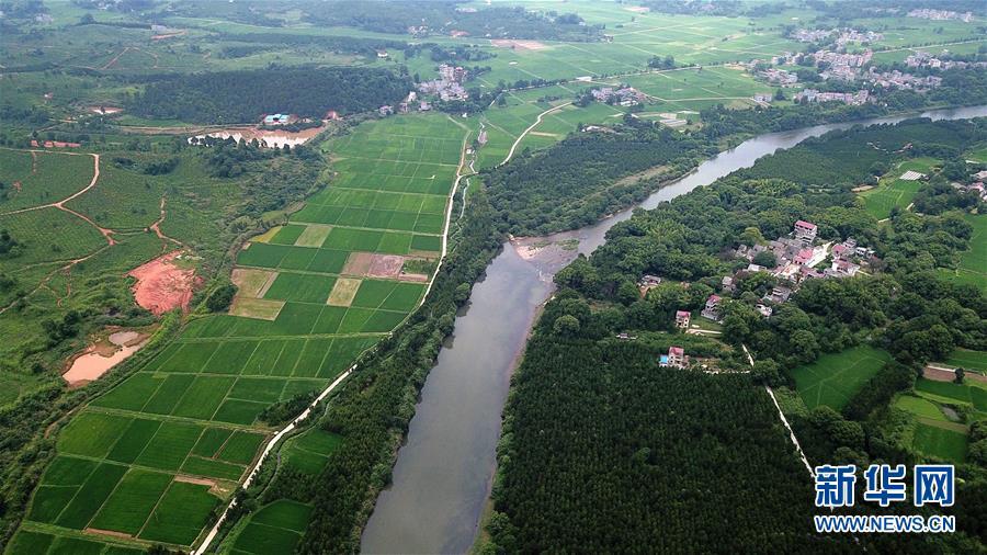這是槎灘陂水利灌溉工程一景(5月29日無人機拍攝)。新華社記者彭昭之攝