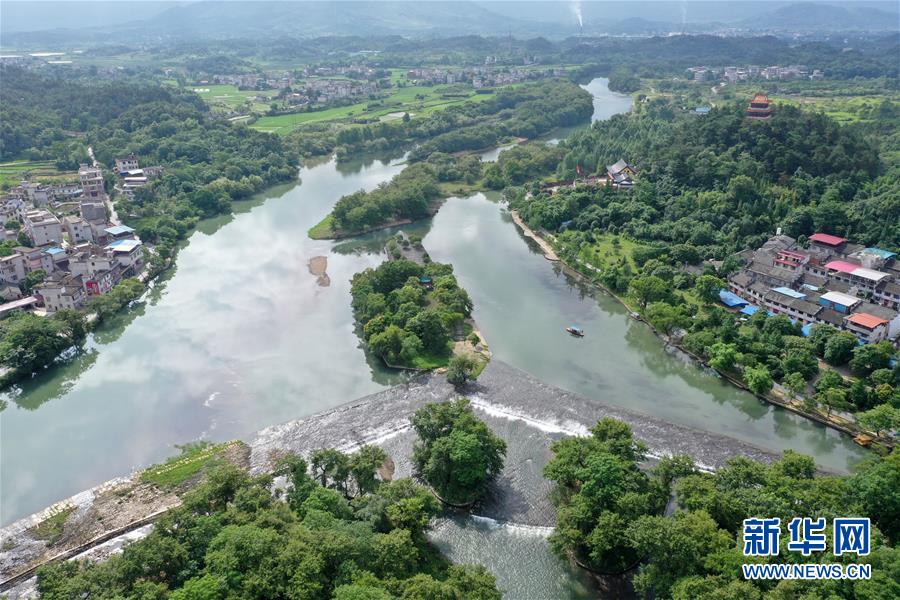 這是6月30日無人機拍攝的廣西興安縣靈渠。 位于廣西興安縣的靈渠是世界上保存最完整的古代水利工程之一,至今仍發(fā)揮著農(nóng)田灌溉、排洪泄洪作用。2018年,靈渠入選世界灌溉工程遺產(chǎn)名錄。 新華社記者 陸波岸 攝