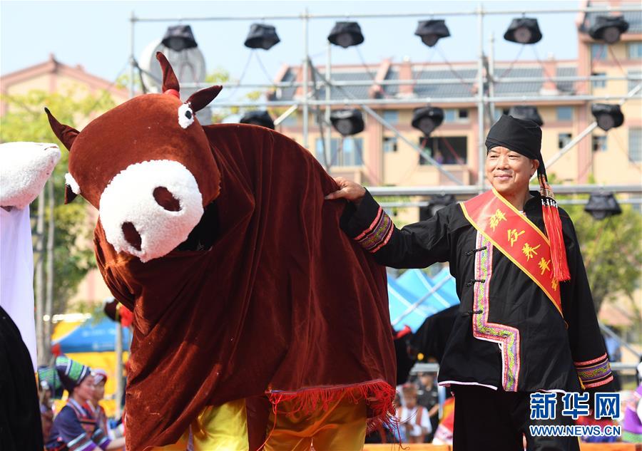 9月17日,廣西都安瑤族自治縣密洛陀文化公園廣場(chǎng),演員在啟動(dòng)儀式上表演節(jié)目。 新華社記者 陸波岸 攝
