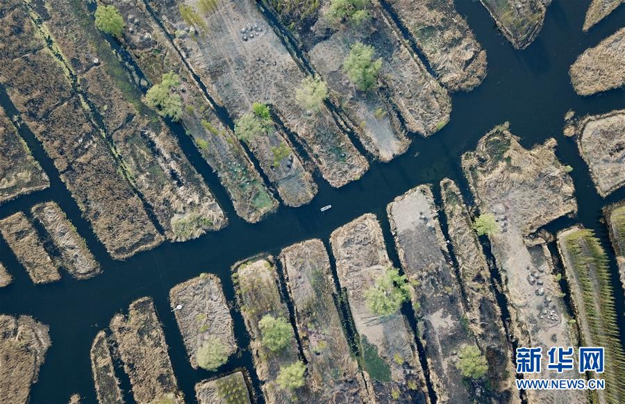 游船在白洋淀內(nèi)行駛(4月10日無人機拍攝)。新華社記者牟宇攝