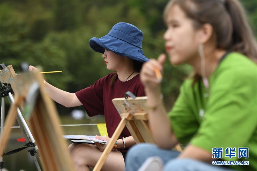 4月24日,繪畫愛好者在宏村風(fēng)景區(qū)寫生。新華社記者任鵬飛攝