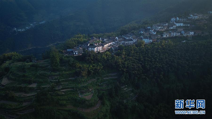 晨曦中的木梨硔村景色(9月18日無人機(jī)拍攝)。9月18日清晨,地處皖南山區(qū)的安徽省黃山市休寧縣木梨硔村沐浴在晨曦之中,靜謐祥和。新華社記者張端攝