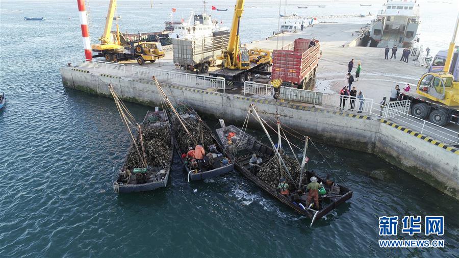 9月23日,滿載牡蠣的漁船返回碼頭(無(wú)人機(jī)拍攝)。新華社記者龍雷攝