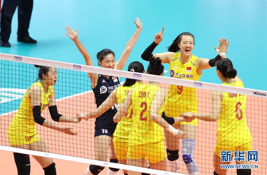 9月23日,中國隊(duì)球員在比賽中慶祝得分。當(dāng)日,在日本札幌舉行的2019年女排世界杯賽第二階段A組循環(huán)賽中,中國隊(duì)以3比0戰(zhàn)勝美國隊(duì)。新華社記者杜瀟逸攝