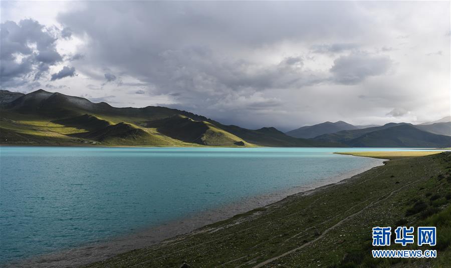 8月31日無人機拍攝的羊卓雍錯風光。新華社記者晉美多吉攝