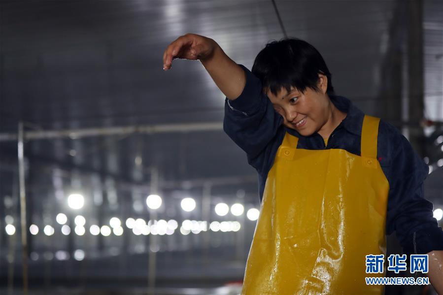郭旗在魚(yú)棚擦去濺在臉上的水滴(9月5日攝)。 新華社記者 楊青 攝