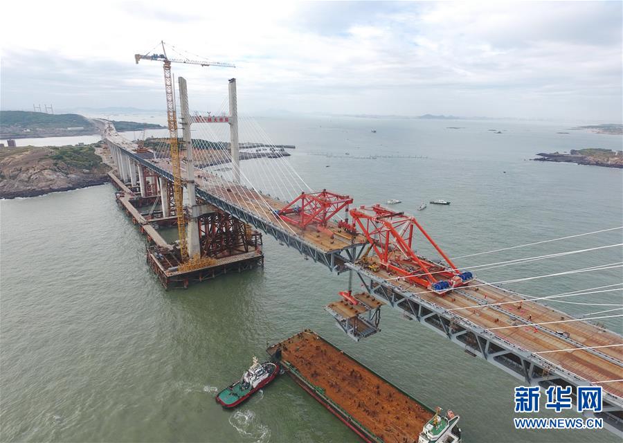 9月21日,平潭海峽公鐵大橋鼓嶼門航道橋的鋼桁梁在吊裝中(無人機拍攝)。9月25日上午,隨著一段長17米、重473噸的鋼桁梁被精確固定到位,總長16.34公里的平潭海峽公鐵大橋合龍貫通。平潭海峽公鐵大橋是福州至平潭鐵路控制性工程,也是“十三五”規(guī)劃中北京至臺灣高鐵的先期工程。大橋起于福州市長樂區(qū),“踏”過四座小島后抵達中國第五大島平潭,上層設計為時速100公里的六車道高速公路,下層為設計時速200公里的高鐵。據福建福平鐵路公司介紹,大橋計劃2020年正式通車。在六年建設過程中,平潭海峽公鐵大橋所應用研發(fā)的多項技術、裝備創(chuàng)下國內外紀錄。新華社記者林善傳攝