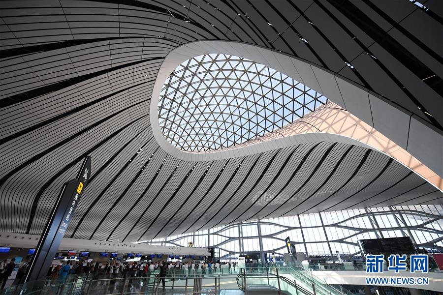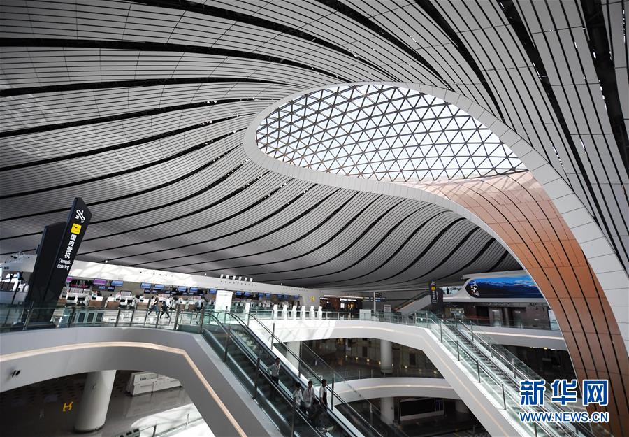 這是9月25日拍攝的北京大興國際機(jī)場航站樓內(nèi)部。新華社記者鞠煥宗攝