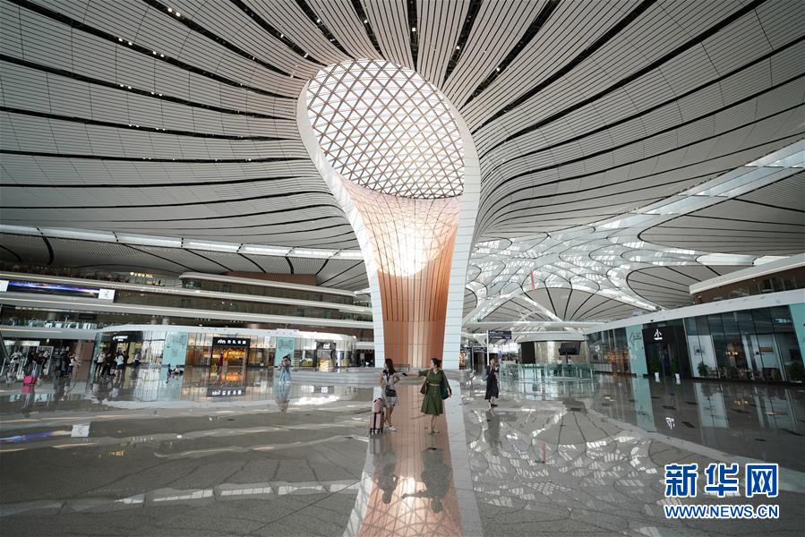 9月25日拍攝的北京大興國際機(jī)場航站樓內(nèi)部。新華社記者張晨霖?cái)z