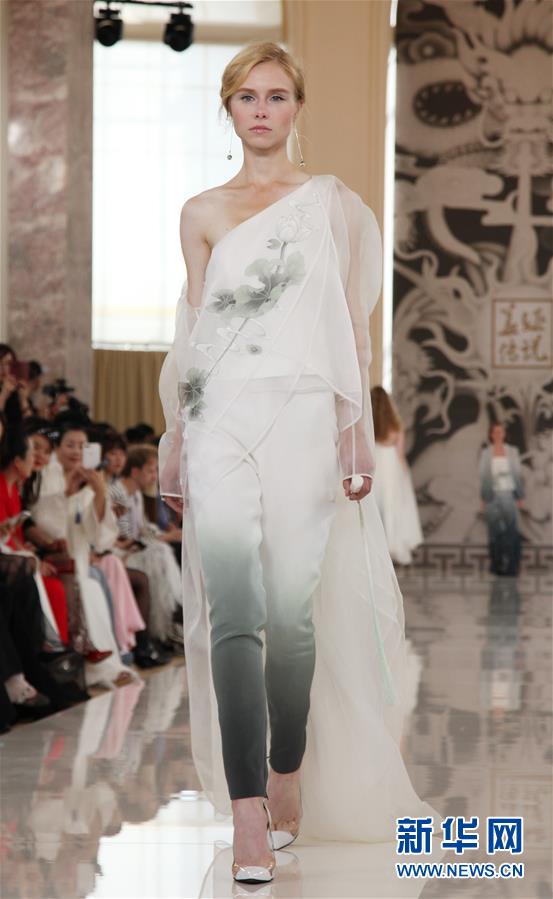 9月30日,在法國巴黎,模特展示中國高級女裝品牌“蓋婭傳說·熊英”2020春夏新品。