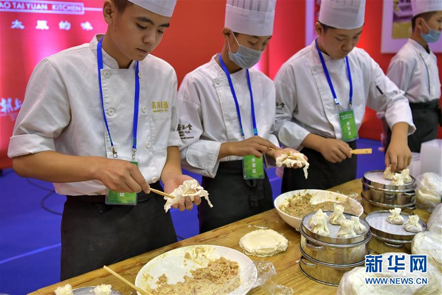 10月3日,面食師傅們在制作燒麥。 新華社記者 曹陽 攝