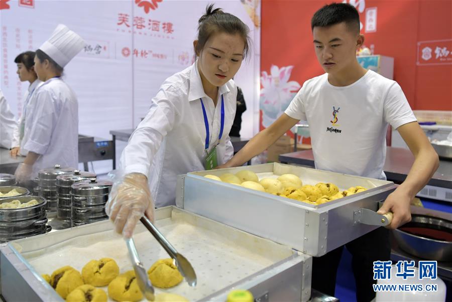10月3日,工作人員在整理制作好的面點(diǎn)。新華社記者 曹陽(yáng) 攝
