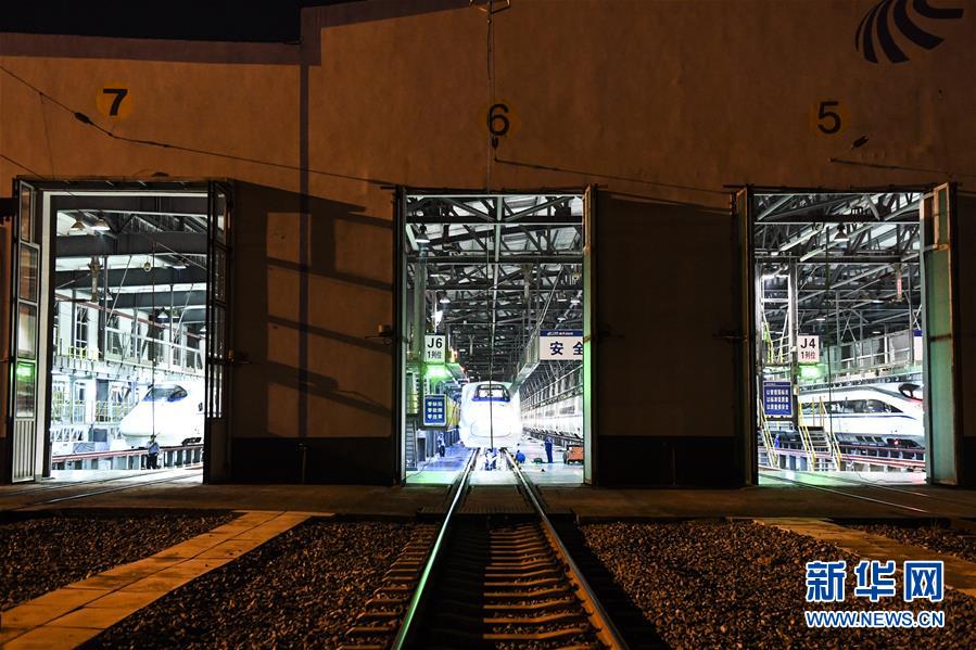 工人們在南寧動車所檢查庫內(nèi)擦洗車輛(10月2日攝)。 國慶長假期間,動車、高鐵開行密度較平時有所增加。當(dāng)夜幕降臨,隨著一列列結(jié)束運營的動車、高鐵陸續(xù)返回,中國鐵路南寧局集團有限公司南寧車輛段南寧動車所檢查庫里的地勤機械師們也變得忙碌起來,他們像醫(yī)生一樣對列車進行全方位檢修保養(yǎng),確保車輛第二天可以正常運行。 新華社記者 曹祎銘 攝