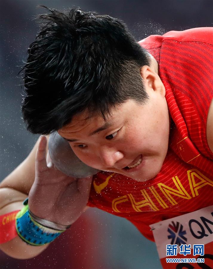 當日,在卡塔爾多哈舉行的2019國際田聯(lián)世界田徑錦標賽女子鉛球決賽中,衛(wèi)冕冠軍、中國選手鞏立姣以19米55的成績奪得冠軍。 新華社記者賈宇辰攝