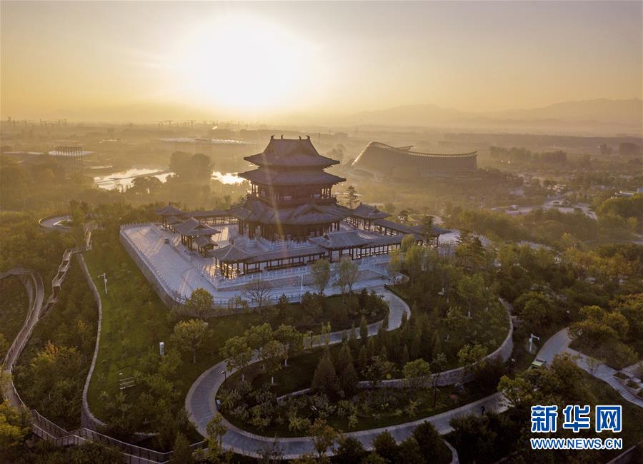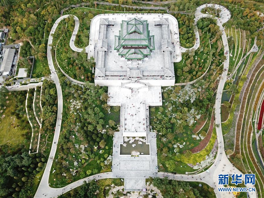 北京世園會(huì)園區(qū)內(nèi)的媯汭劇場(chǎng)(10月7日無人機(jī)拍攝)。新華社記者才揚(yáng)攝