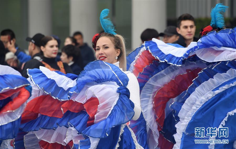 演員在北京世園會(huì)園區(qū)表演(4月29日攝)。新華社記者 李欣 攝