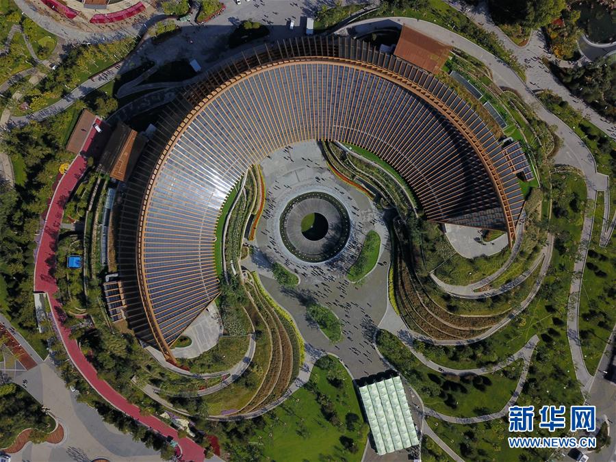 北京世園會(huì)國(guó)際館(10月6日無人機(jī)拍攝)。新華社記者張晨霖?cái)z