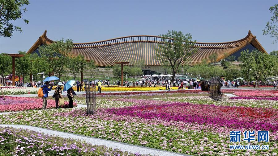 游客在北京世園會(huì)中國館前游覽(5月23日攝)。 新華社記者 李欣 攝