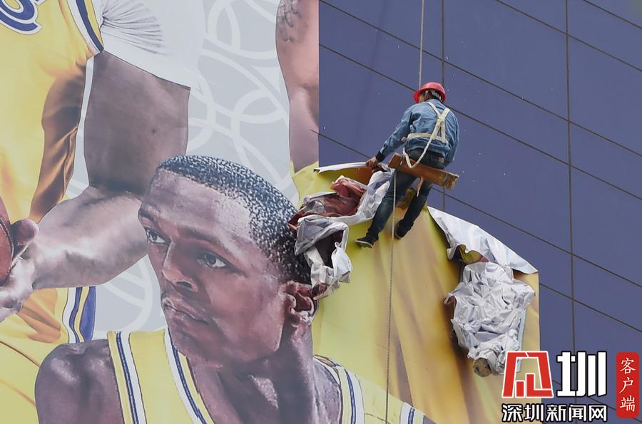 “2019NBA球迷之夜”取消,上海正大廣場(chǎng)外圍巨幅NBA中國(guó)賽海報(bào)被拆除。