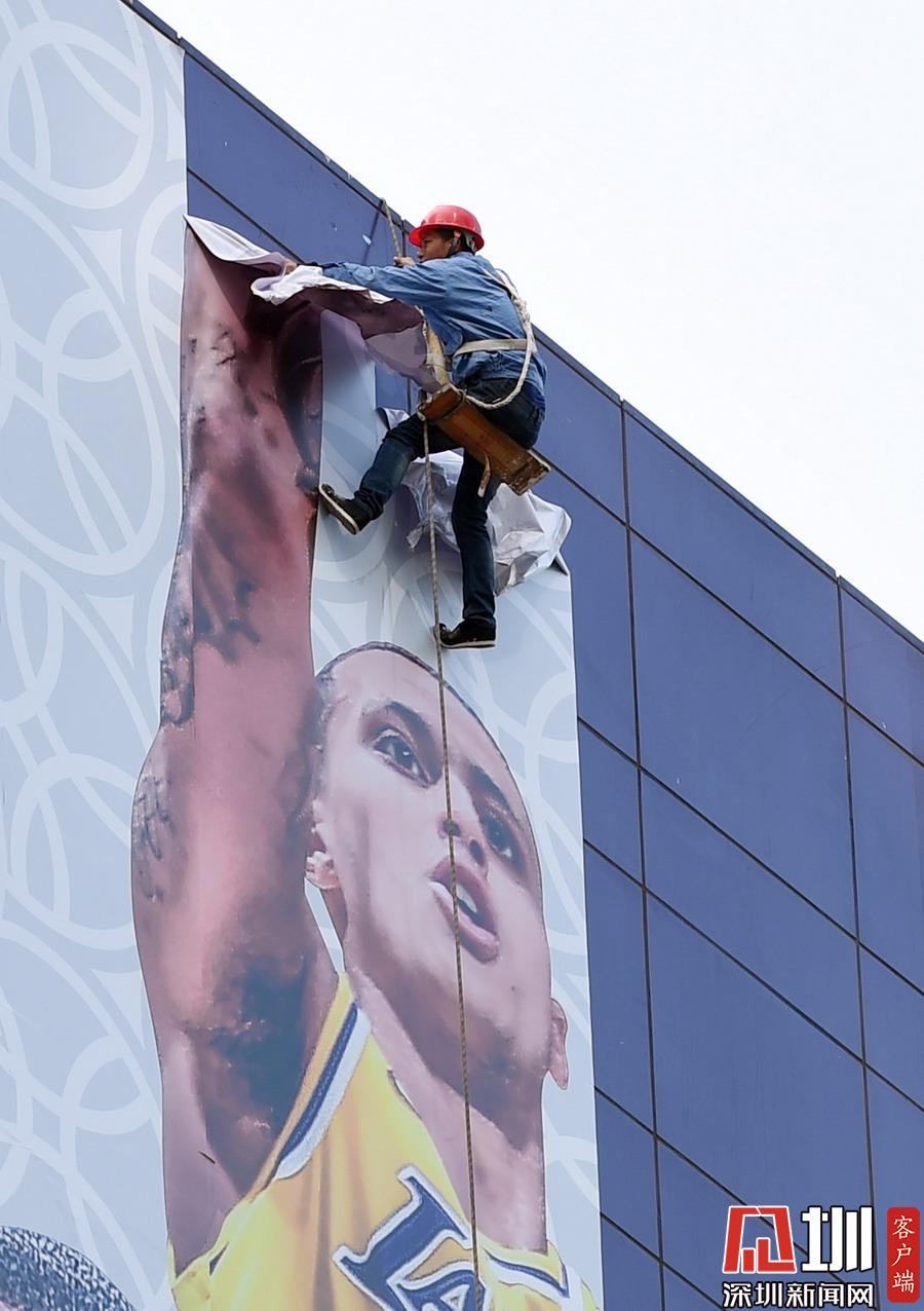 “2019NBA球迷之夜”取消,上海正大廣場外圍巨幅NBA中國賽海報(bào)被拆除。