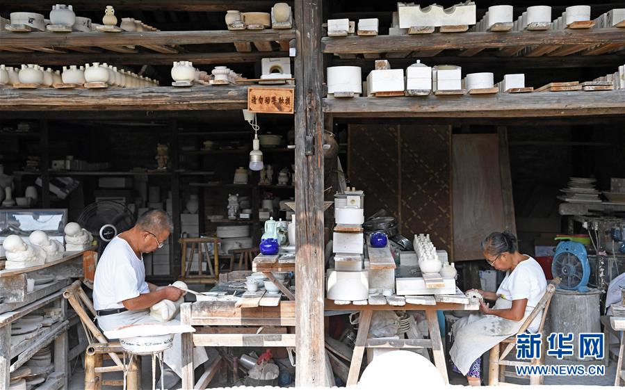 在江西景德鎮(zhèn)御窯廠遺址附近的一處老窯廠內,工匠們在制作瓷器(2018年9月20日攝)。新華社記者 萬象 攝