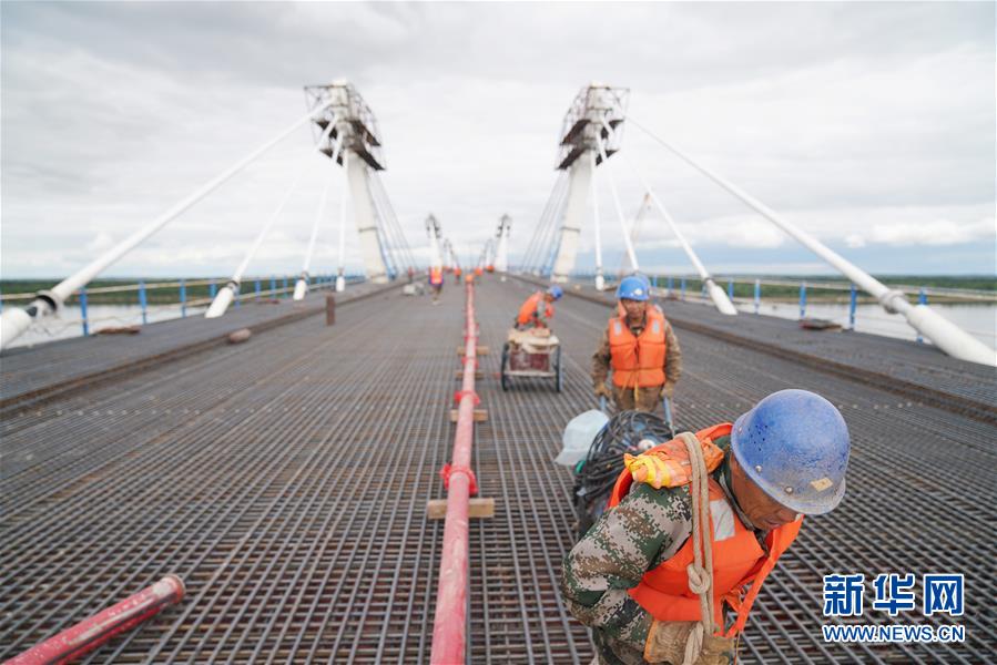 目前,中俄合建的首座跨境公路大橋——黑河到布拉戈維申斯克黑龍江(阿穆爾河)大橋進(jìn)入橋面鋪裝施工作業(yè)階段。大橋于今年5月31日順利合龍,目前中方每天有約200名工人進(jìn)行混凝土澆鑄橋面作業(yè),預(yù)計橋面施工將持續(xù)到9月上旬。大橋全長1284米,建成后將形成一條新的國際公路通道,實現(xiàn)中俄地方城市之間互聯(lián)互通。