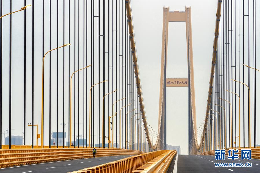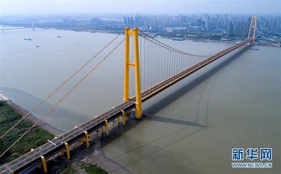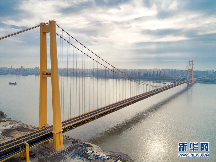 楊泗港大橋建設(shè)創(chuàng)造了多項世界之最:一是主橋跨度達(dá)1700米,為世界上跨度最大的雙層懸索橋;二是主橋設(shè)置雙層雙向12車道,是世界上通行能力最大的公路橋梁;三是大橋主纜設(shè)計張力6.5萬噸,采用了世界上強度等級最高的主纜鋼絲;四是大橋設(shè)置機(jī)動車道、非機(jī)動車道、人行觀光道,集過江交通與觀光于一體,是長江上功能最完備的橋梁。新華社記者熊琦攝