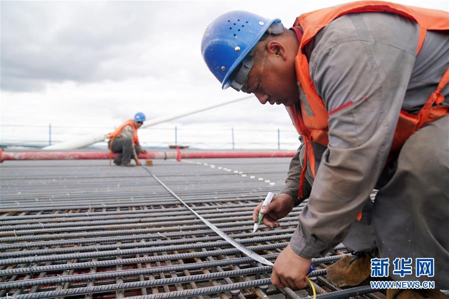 工人在大橋上進(jìn)行橋面鋪裝施工作業(yè)(8月19日攝)。新華社記者王建威攝