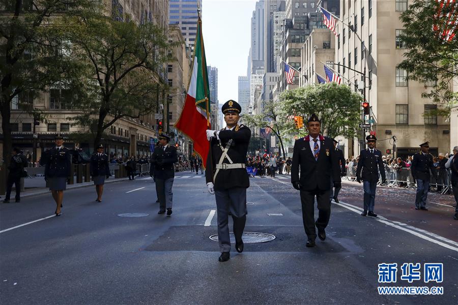 10月14日,在美國(guó)紐約曼哈頓第五大道,人們參加哥倫布日游行。當(dāng)天,紐約舉行哥倫布日游行,紀(jì)念意大利航海家克里斯托弗·哥倫布首次到達(dá)美洲大陸。哥倫布日游行也是美國(guó)最大的展示意大利文化傳統(tǒng)的慶?;顒?dòng)。新華社記者李木子攝