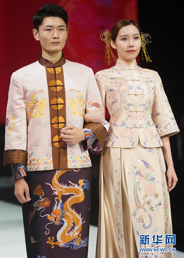 10月16日,模特在展示婚慶禮服。 當日,“愿·緣·圓”上久楷婚慶主題秀在江蘇省蘇州市吳江區(qū)盛澤鎮(zhèn)舉行。新華社記者 季春鵬 攝