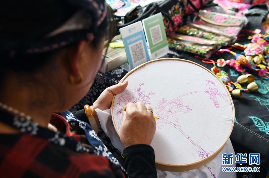 10月16日,團結(jié)村的一名“巧媳婦”在刺繡。 新華社記者 楊宗友 攝