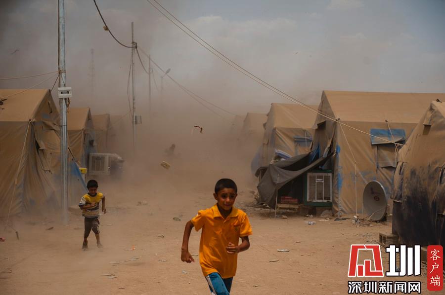 當?shù)貢r間2014年7月23日,伊拉克Khazir,Khazir難民營的孩子們在沙塵暴中奔跑。逃離“伊拉克和黎凡特伊斯蘭國”(ISIS)極端組織的伊拉克人在Khazir難民營里避難。這所難民營建于6月10日,目前有700人住在這里,其中大多數(shù)是穆斯林。