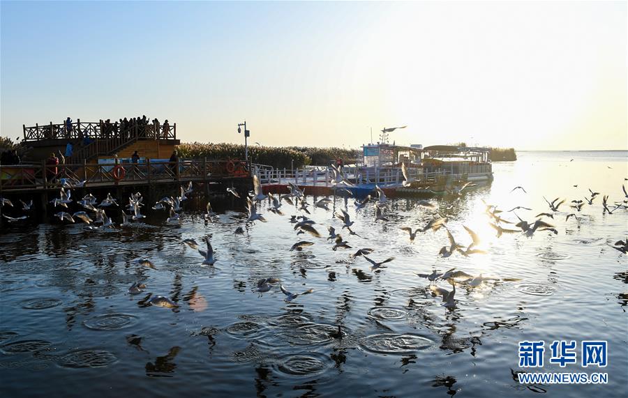 這是10月17日拍攝的居延海岸邊的水鳥。 新華社記者 彭源 攝
