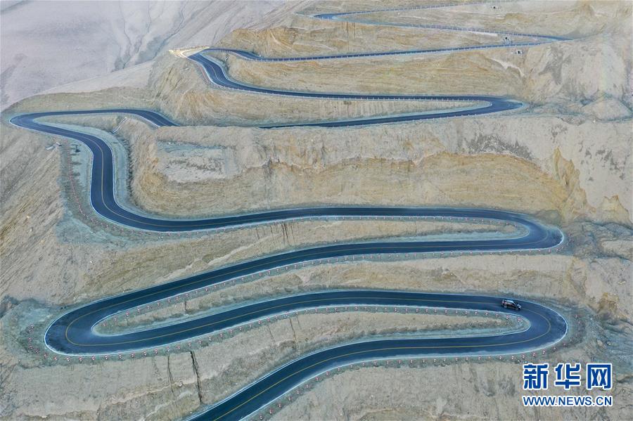 這是10月20日無(wú)人機(jī)拍攝的新疆塔什庫(kù)爾干塔吉克自治縣吾格亞提盤山公路。在中國(guó)西陲的新疆帕米爾高原,塔什庫(kù)爾干塔吉克自治縣縣城到瓦恰鄉(xiāng)之間有條蜿蜒的盤山公路,海拔超4200米,全長(zhǎng)36公里,最大落差近1000米,被當(dāng)?shù)厝朔Q為“高原天路”。盤山公路彎曲盤旋的走勢(shì)與周邊雄渾壯麗的風(fēng)光,共同構(gòu)成一幅壯美畫(huà)卷。這條公路名為吾格亞提盤山公路,2019年7月投入使用,便利了山區(qū)農(nóng)牧民的出行。新華社記者丁磊攝