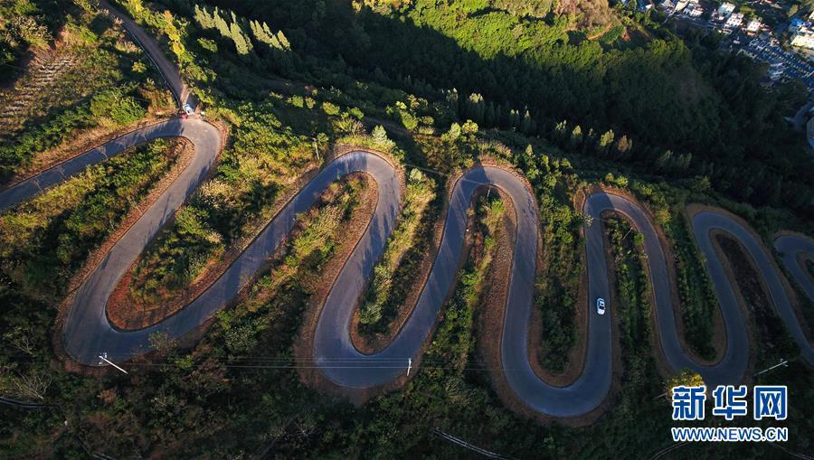 云南宜良“68道拐”位于云南省昆明市宜良縣,是宜良縣城通往靖安哨村的盤山公路。 新華社記者藺以光攝