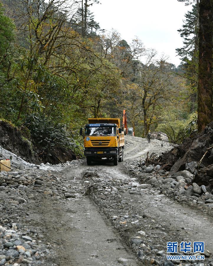 工程車在派墨農村公路施工現場作業(yè)(10月24日攝)。新華社記者李鑫攝