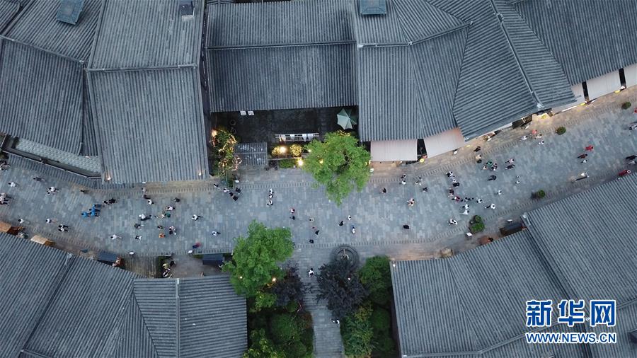 7月2日,游客在丹寨萬(wàn)達(dá)小鎮(zhèn)游覽(無(wú)人機(jī)拍攝)。新華社記者歐東衢攝