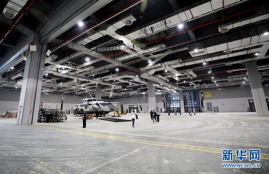 10月25日,在展館內(nèi),展臺框架搭建工作正在進(jìn)行。 新華社記者 方喆攝