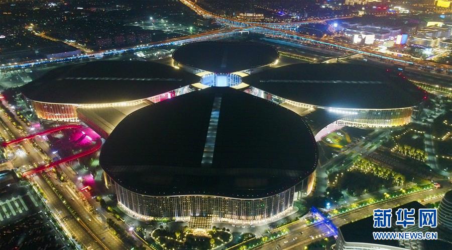 2019年11月5日,第二屆中國(guó)國(guó)際進(jìn)口博覽會(huì)將在上海開(kāi)幕。夜幕下的國(guó)家會(huì)展中心(上海)燈光璀璨,流光溢彩,靜待八方賓客。新華社記者丁汀攝