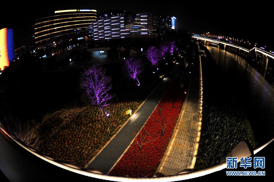 10月25日晚在國(guó)家會(huì)展中心(上海)附近拍攝的小淶港夜景。新華社記者張建松攝