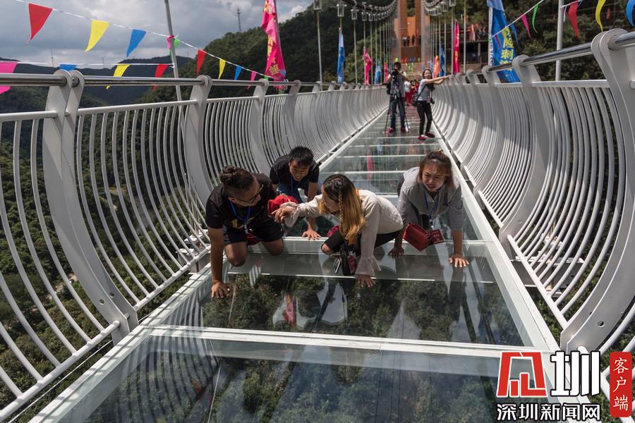 2018年8月18日,昆明市安寧首座高空峽谷5D玻璃大橋在青龍峽景區(qū)內(nèi)正式試運行,這也是云南省第一座高空峽谷玻璃大橋。該橋位于螳螂川河畔的青龍峽景區(qū),橋的垂直高度108米,總長跨度為188米。橋面采用聲光電技術,有20多種特效場景。踩上去,伴隨著玻璃破碎的聲音,橋面也呈現(xiàn)玻璃破碎的畫面,整個營造出了5D的視覺感受,顛覆你對高空刺激的認知。游客踏上高空玻璃橋表示很“害怕”。