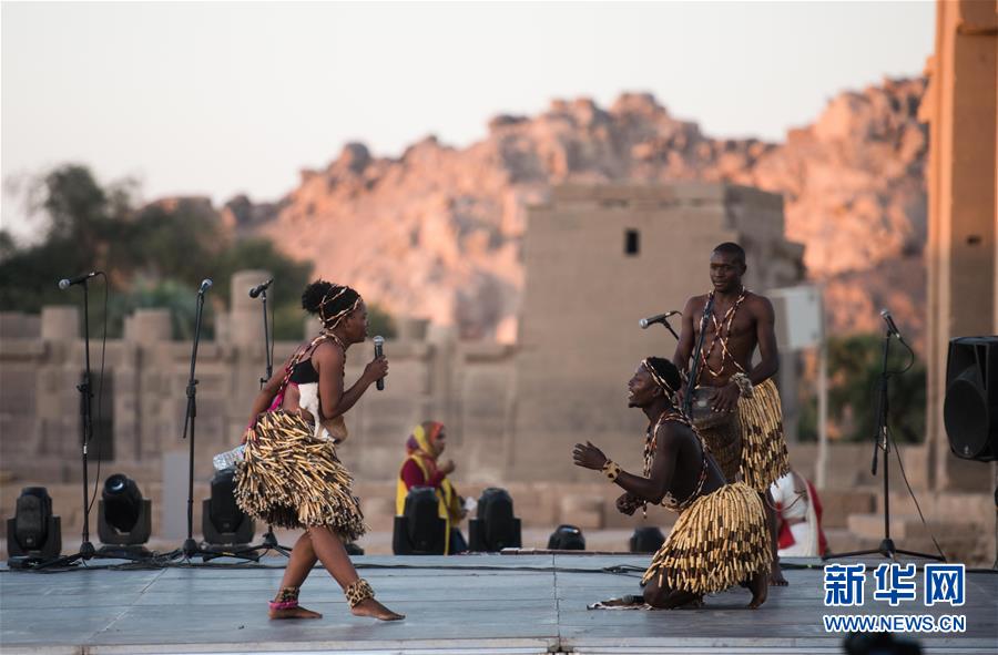 10月27日,演員在位于埃及阿斯旺的菲萊神廟表演。 新華社記者 鄔惠我 攝