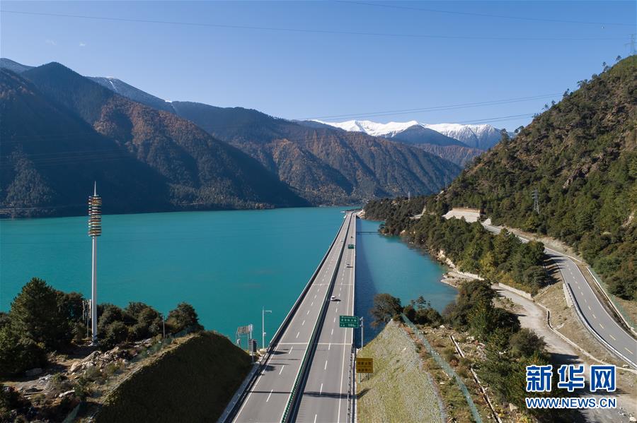 這是10月28日拍攝的林芝境內(nèi)的多布特大橋(無人機拍攝)。新華社記者李鑫攝